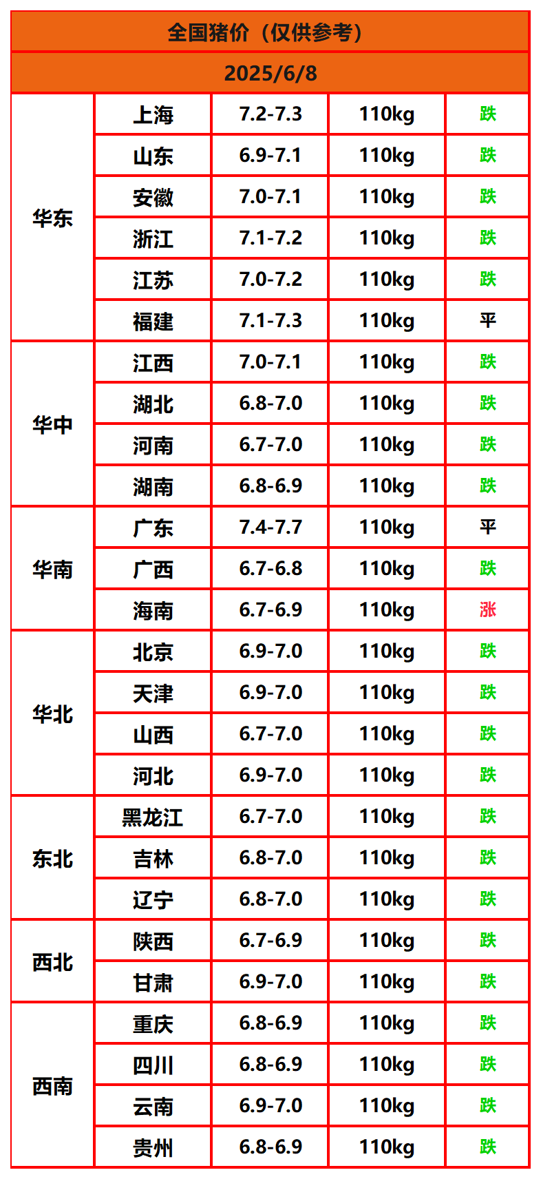 今日猪价 | 2025年6月8日全国猪价行情一览表!