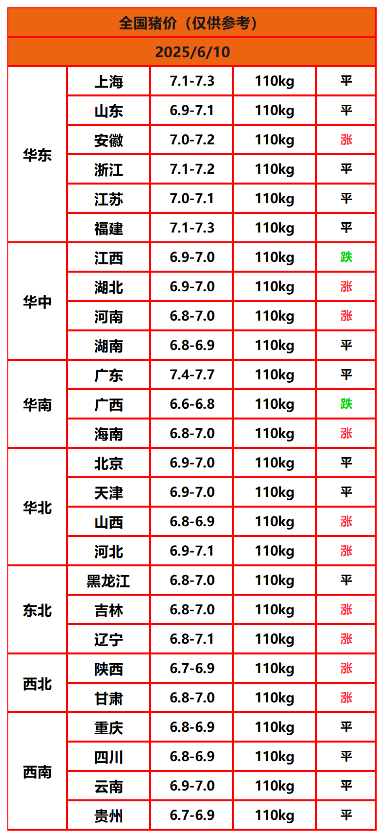 今日猪价 | 2025年6月10日全国猪价行情一览表!