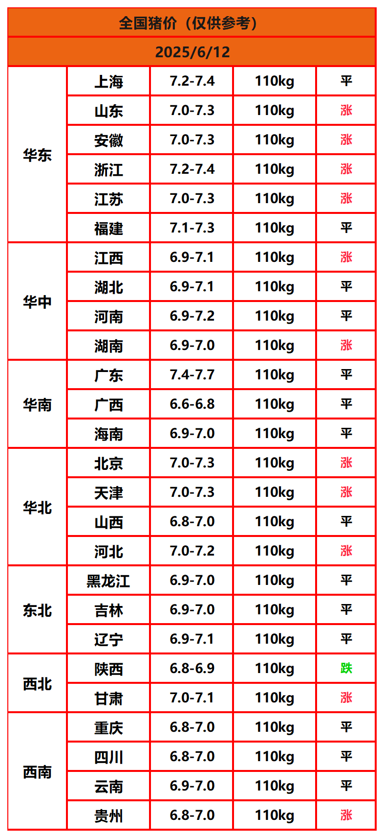 今日猪价 | 2025年6月12日全国猪价行情一览表!