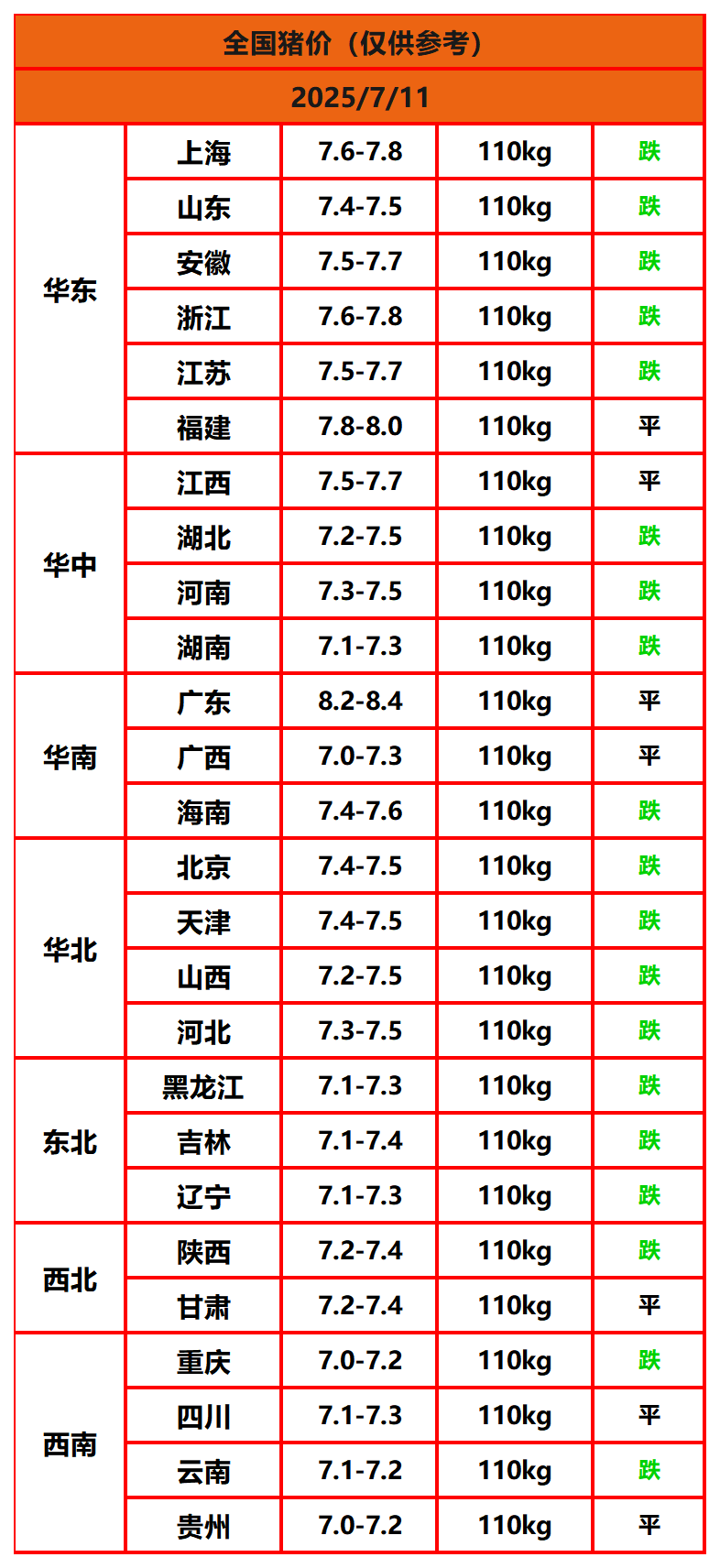 今日猪价 | 2025年7月11日全国猪价行情一览表!