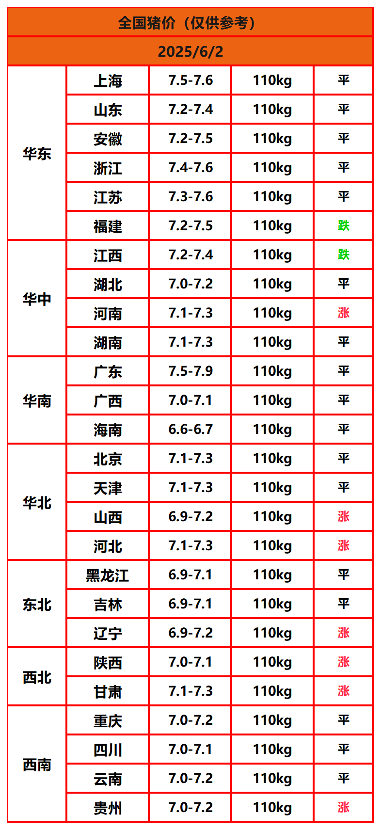 今日猪价 | 2025年6月2日全国猪价行情一览表!