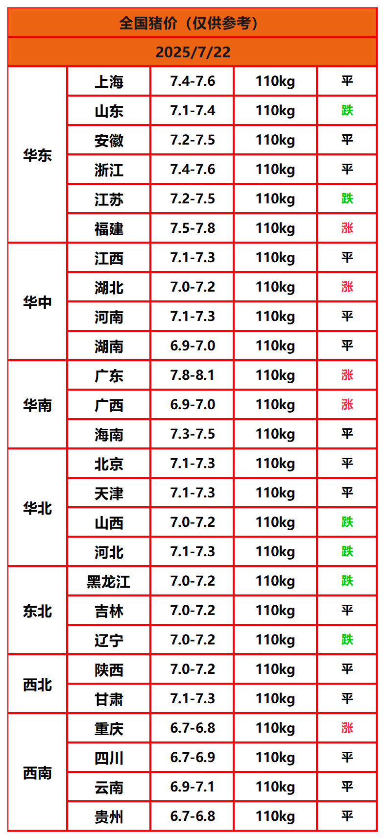 今日猪价 | 2025年7月22日全国猪价行情一览表!